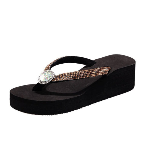 Women Shiny Crystal Platform Flip Flops 2023 Summer New Outdoor Fashion Wedges Slippers Woman Light Walking Slides Plus Size 42