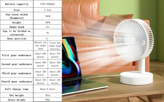 KASYDoFF power bank electric fan shaking head fan, 4-speed wind regulation, quiet and comfortable living room, bedroom
